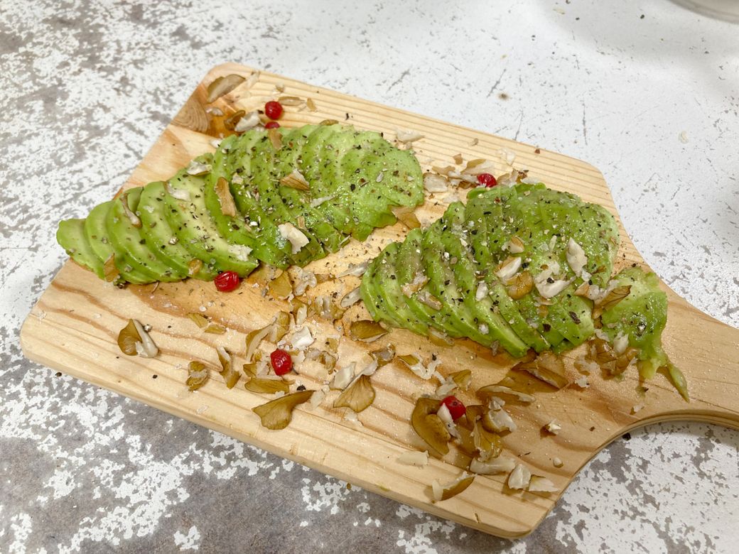 アボカド。思いつきで、クルミをトッピングしてみました。