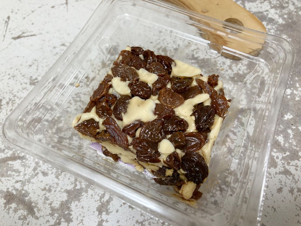 ラムレーズンクリームチーズです。これは成城石井のものです。そのままでも美味しいですが、クッキーに挟むだけで美味しいレーズンサンドになると思います。見つけたら絶対買いだなと思いながらも、結構カロリー高そうで躊躇してしまう商品ですね。