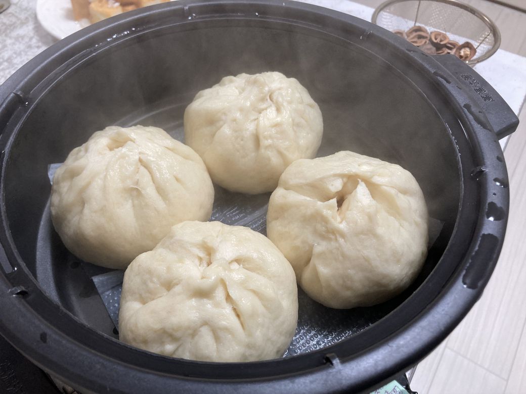 蒸しあがった肉まん。見た目も美味しそうですが、実際とても美味しかったです。