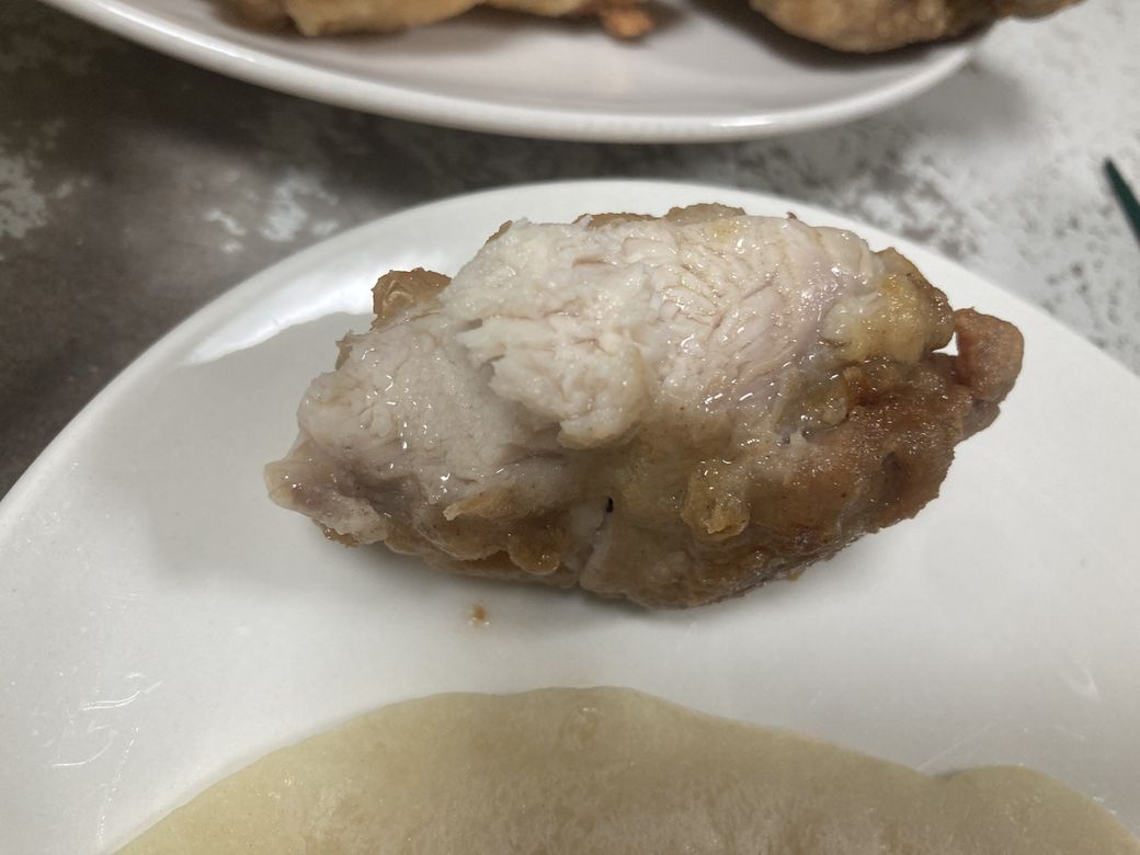 主役のフライドチキン。思ったより、焼きめがつかなくてどうだろうと心配でしたが、とっても美味しい。山ちゃんに続きリピート確定ですね。