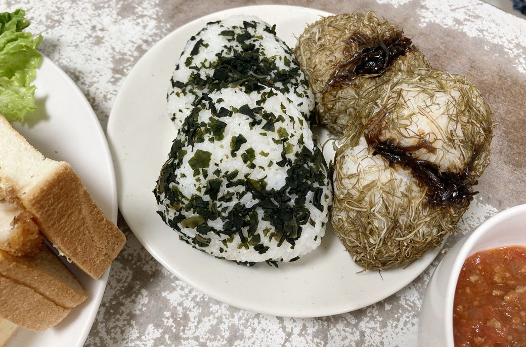 おにぎり。なんと1個80円くらい。直前に行ったコンビニで200円の鮭のおにぎりでショックを受けたせいか感動してしまいました。 値段だけでなく圧縮率もすごくて、2つ食べればほぼおなかいっぱいに。