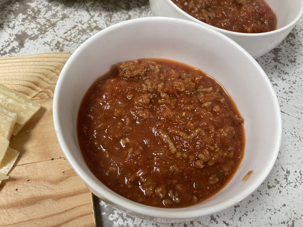 ミートソース。久しぶりに作りました。ミートソースは自家製が一番ですね。