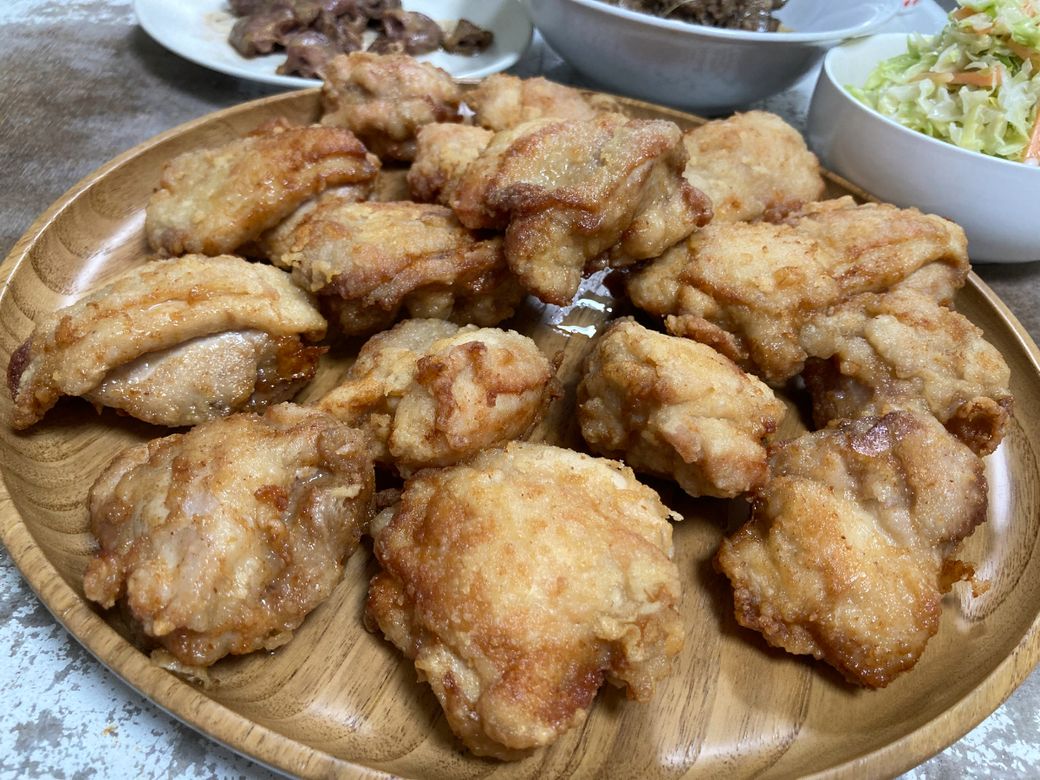 金曜ごはんです。今回は、私のリクエストで「唐揚げ」。