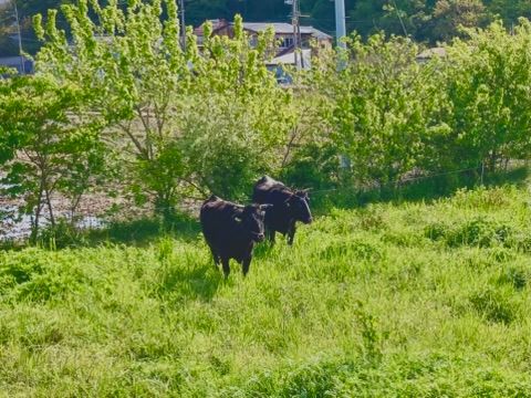 道中にいた牛さん。冬頃探していなかったので、牛がいる季節というのがあるみたいですね。