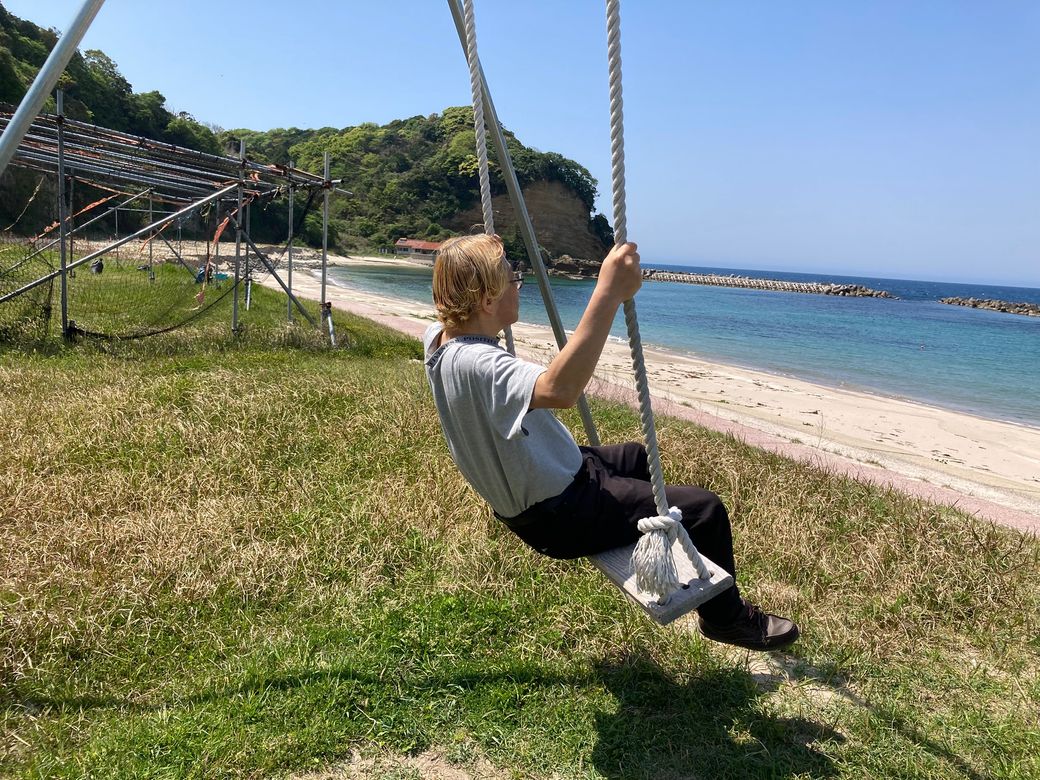 食後はブランコに乗ります。海辺に来た時の儀式みたいなものですね。