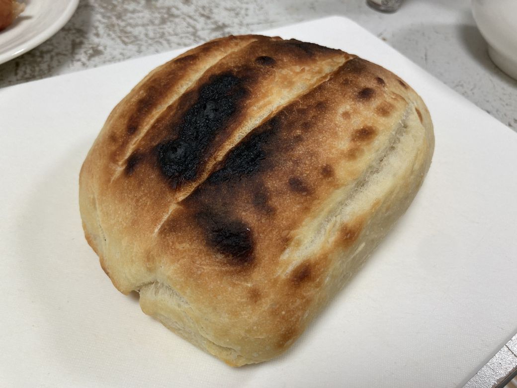 うちにはオーブンがないので、オーブントースターで挑戦です。庫内が狭く、熱源にも近いので焦げやすく焼きムラも出やすいのですが、焼き上がりは思っていた以上によくて、表面はパリッと、中はふんわりしたパンになりました。